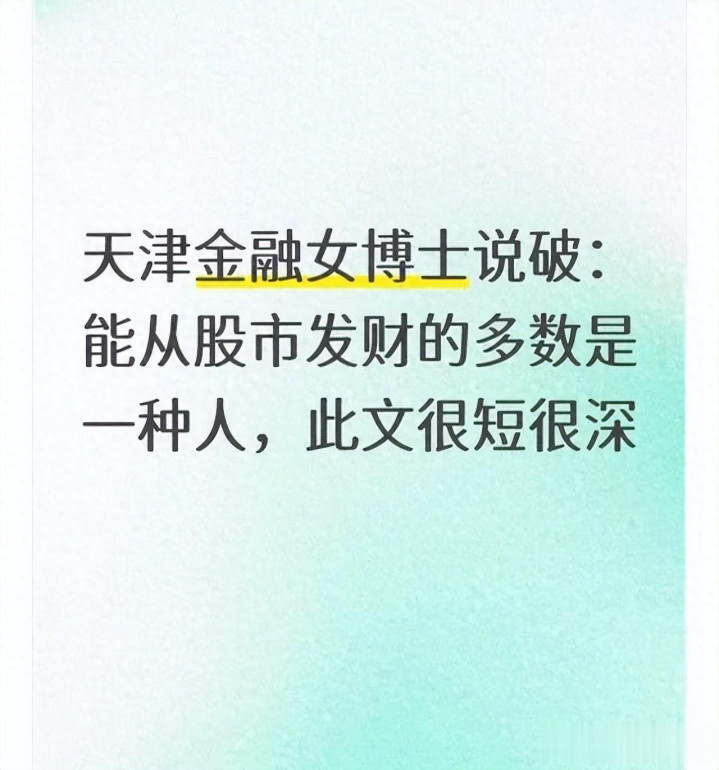 她讲,能在股市里真正发家致富的,其实来来回回就那么一种人。